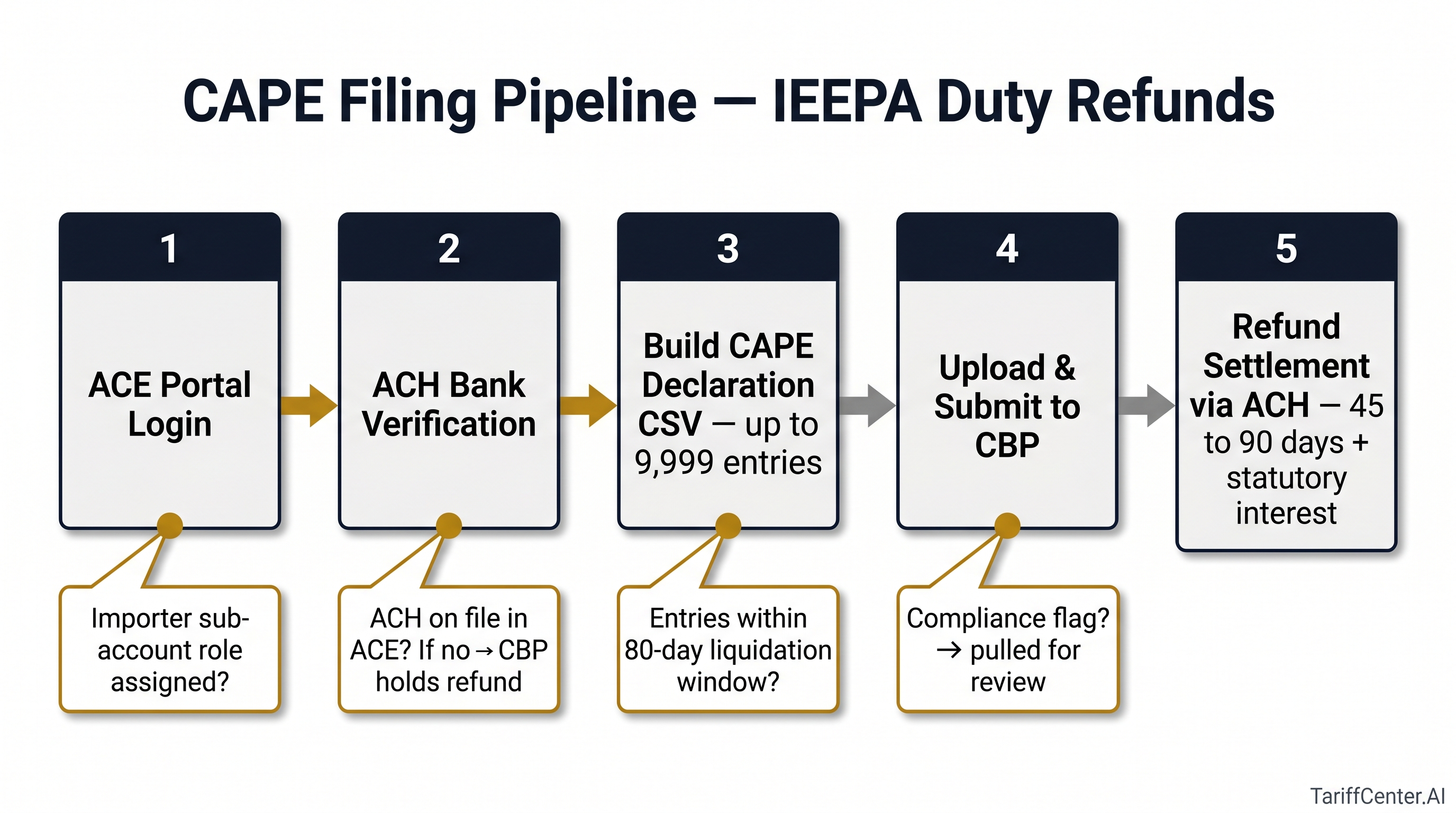 The CAPE portal goes live April 20, 2026. If your ACE account, ACH details, and broker coordination aren't in place by April 19, you won't get a refund on day one. Here's the operational readiness checklist.
